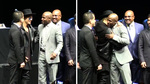 Justin didn't sit on the stage during the speeches but as soon as Floyd and Manny posed with thehonchos, JB was glued to his hip reppin' for The Money Team. As for Manny, there were no pop stars in his crew then again, he does his own singing sorta. (BollywoodChain.Com)